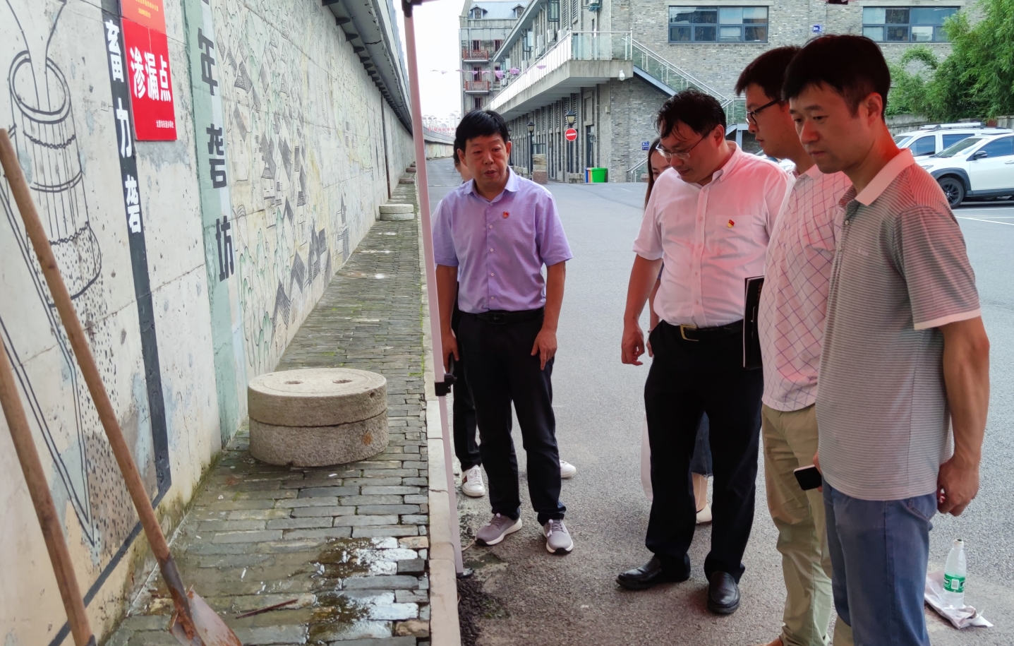 最后,調(diào)研組一行來到園區(qū)防洪墻向防汛值守人員表示慰問。